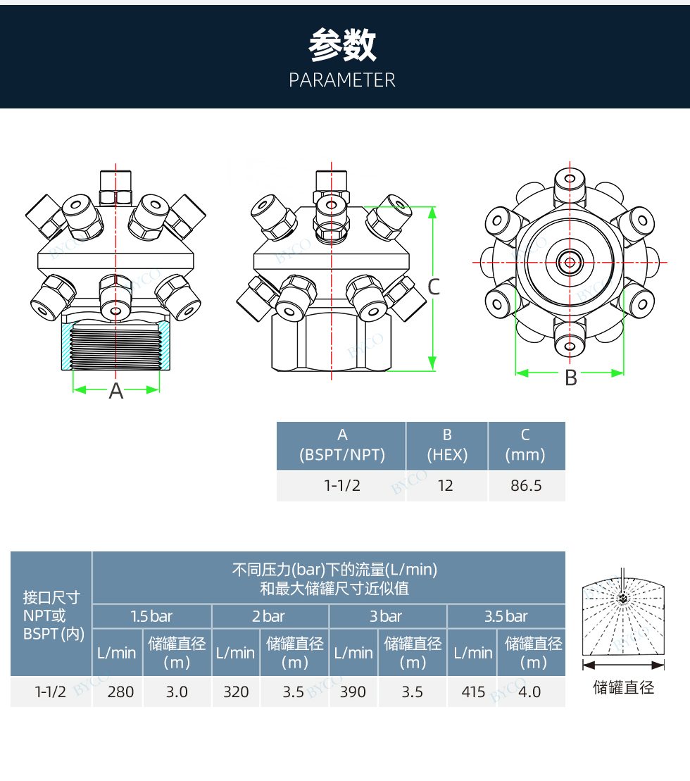 流量/壓力范圍:34到384 l/min:0.4到4bar。