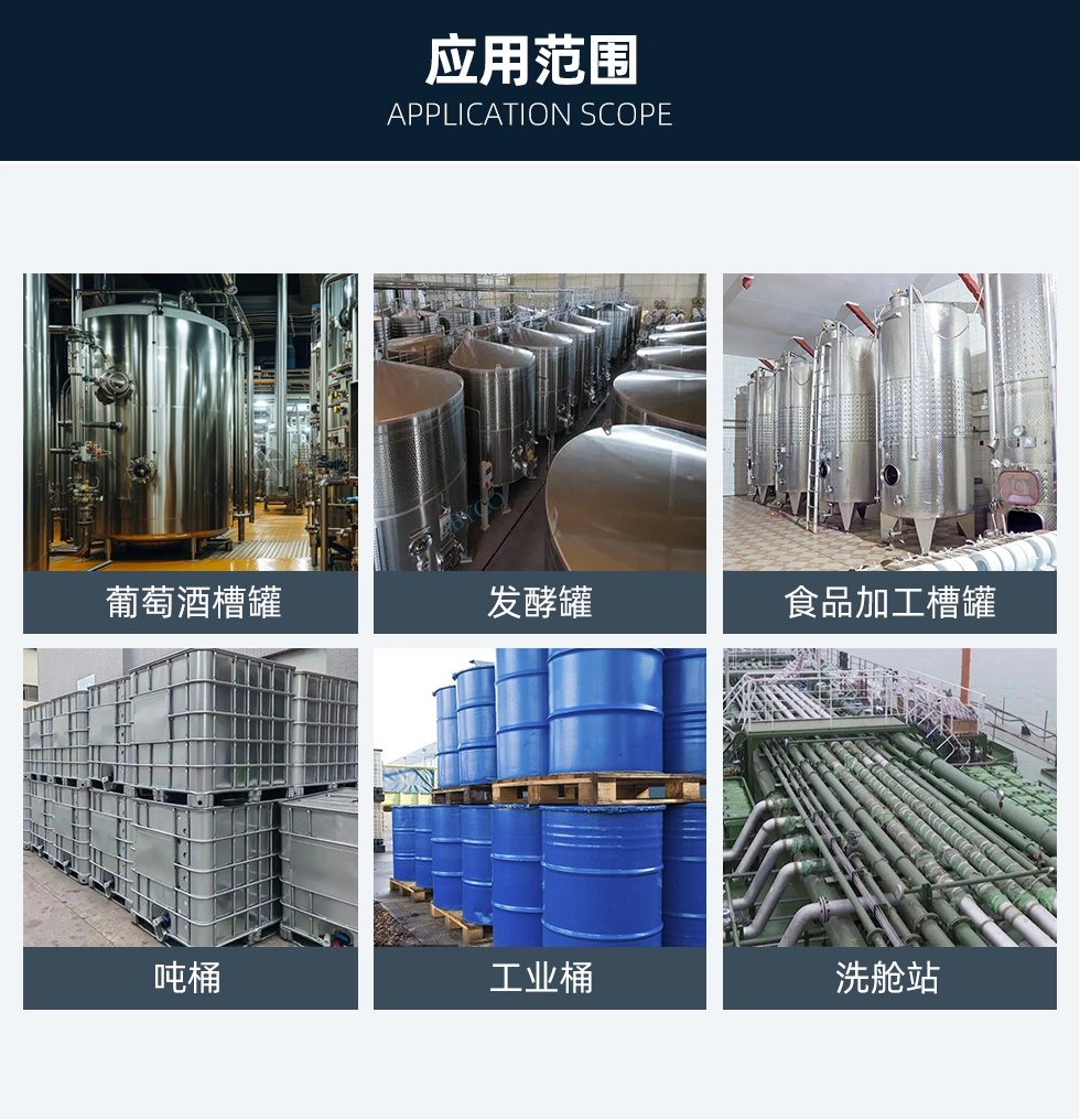 應用范圍:貨柜清洗,小桶洗滌,管道清洗,容器清洗,鼓狀桶清洗